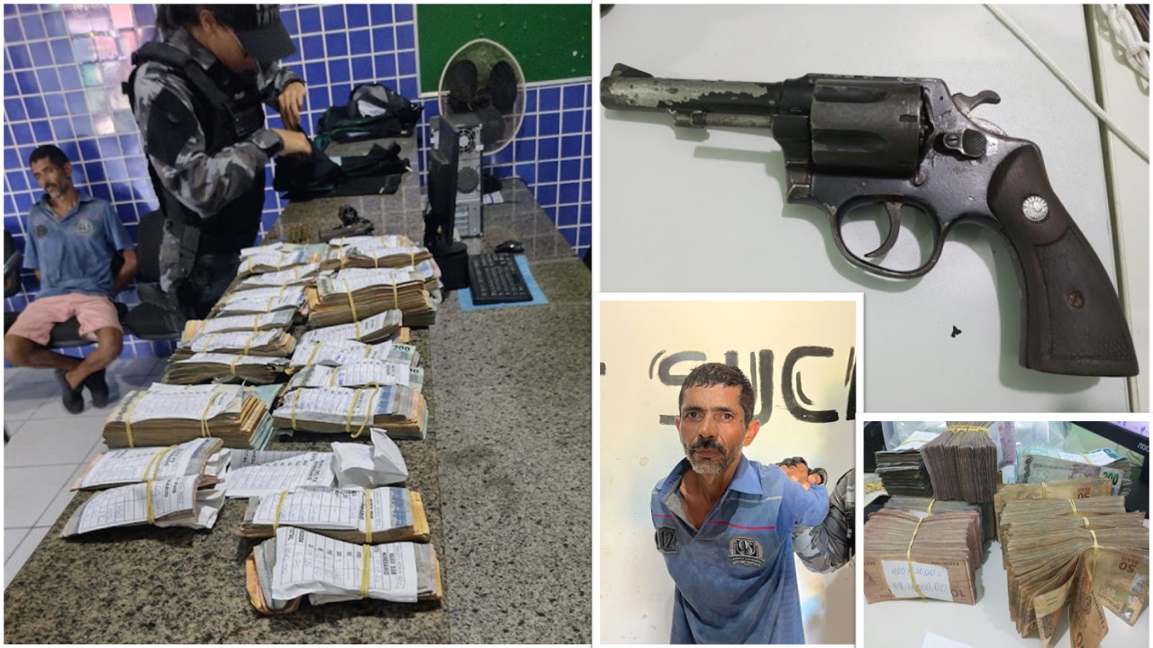 Ao chegar no veículo para pegar o dinheiro para depositar, surgiu do nada o suposto assaltante ora identificado como Gilberto Coelho dos Santos, 53 anos, procedente do estado do Ceará, que sacou o revólver e anunciou o assalto.